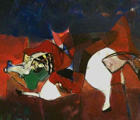 Born in Woodhaven New York in 1925, he studied at the Grand Central School of Art in New York before enlisting in the Marines in 1943. Following the war he attended L’Ecole des Beaux Arts, La Grande Chaumiere and the atelier of Fernand Leger. In 1950 he came to Woodstock, New York and attended classes of Yasuo Kuniyoshi at the Art Students league.