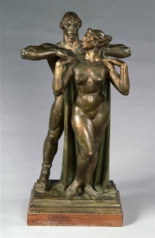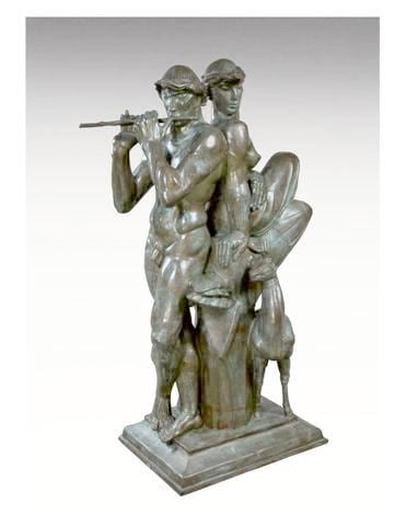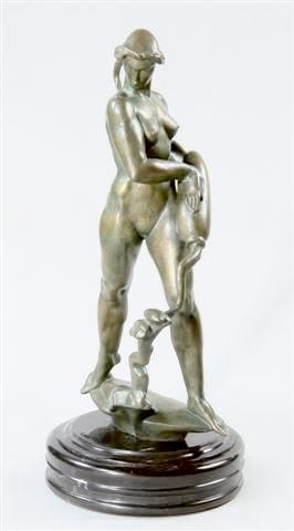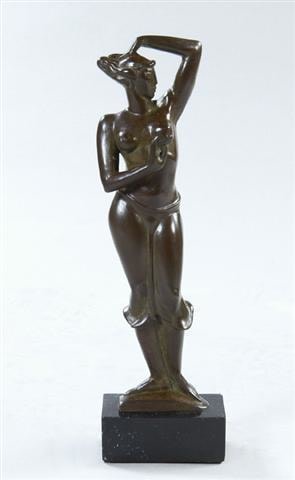 Wein’s early career proved highly successful as he won many of the major awards from the National Sculpture Society, National Academy of Design and Architectural League. The most prestigious of awards, the Prix de Rome, was bestowed upon Albert in 1947 for his obvious commitment to the modernization of the classical canon. Beethoven, Dancing Girl, Phryne and Homage to Bela Bartok were all created while Wein studied and worked in Rome during 1947 and 1948. Each work addresses Wein’s approach to providing only the necessary of details with a consistent focus on the nude female figure as a subject. The monumentality of these small works transcends their physical space and emotional dynamism.