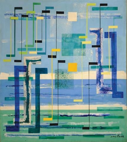 Overlooked as one of the early pioneers of the American abstract movement, Maurice Golubov created an early artistic vocabulary, which paralleled that of Mondrian and the Russian Constructivists, within the confines of his own will and without pre-exposure to any artistic influence. Golubov’s work was exhibited extensively at the Museum of Modern Art (NY) and the Whitney Museum of American Art in the 1950s and 1960s. Additionally by 1975, Tibor de Nagy invited him into their stable of modern artists and in 1980 a retrospective of Golubov’s work was held at the Mint Museum in South Carolina.